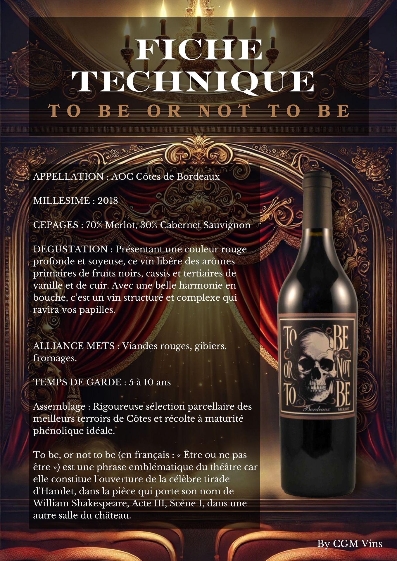 Le nom, inspiré de la célèbre phrase de Shakespeare, symbolise une quête existentielle, une invitation à choisir sa voie avec audace. Tout comme la célèbre tirade de Hamlet, ce vin nous invite à prendre des décisions sans compromis, à embrasser pleinement la vie, dans toute sa complexité et sa beauté.